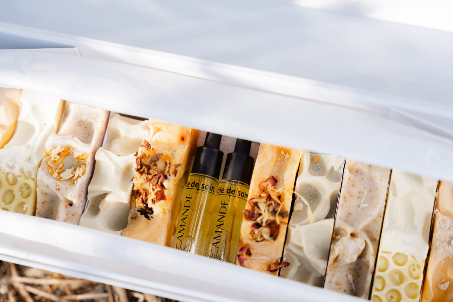 Dans ce coffret vous découvrirez 2 exemplaires de chacun de nos 6 savons ainsi que notre huile d’amande douce en spray.